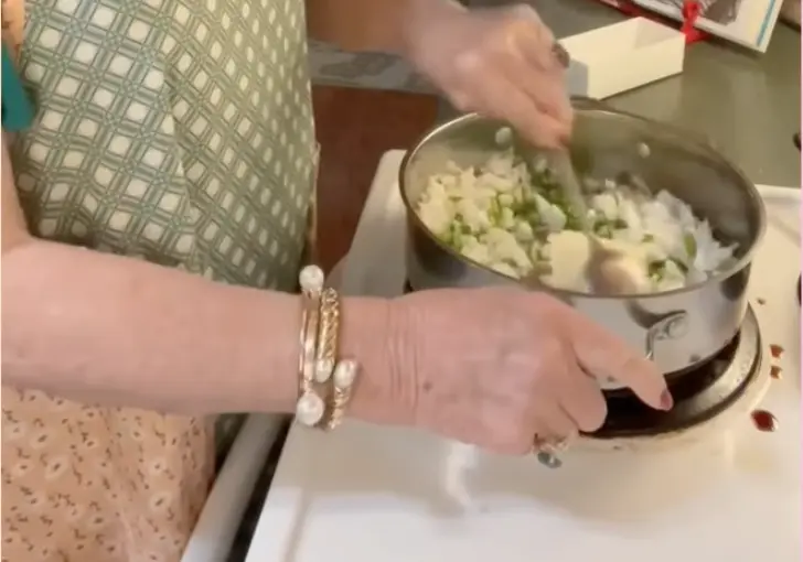2. Place a skillet over medium heat and add ½ stick of salted butter. Add the chopped onion and bell pepper and sauté until soft and tender, stirring occasionally. Once cooked, remove from heat and set aside.