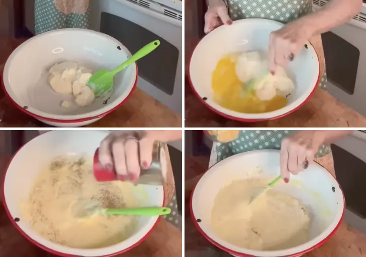 3. In a large mixing bowl, add 1 cup of mayonnaise. Crack in the 2 eggs and stir until blended. Sprinkle in black pepper to taste. No salt is added at this stage because the butter and processed cheese already contain plenty of salt.