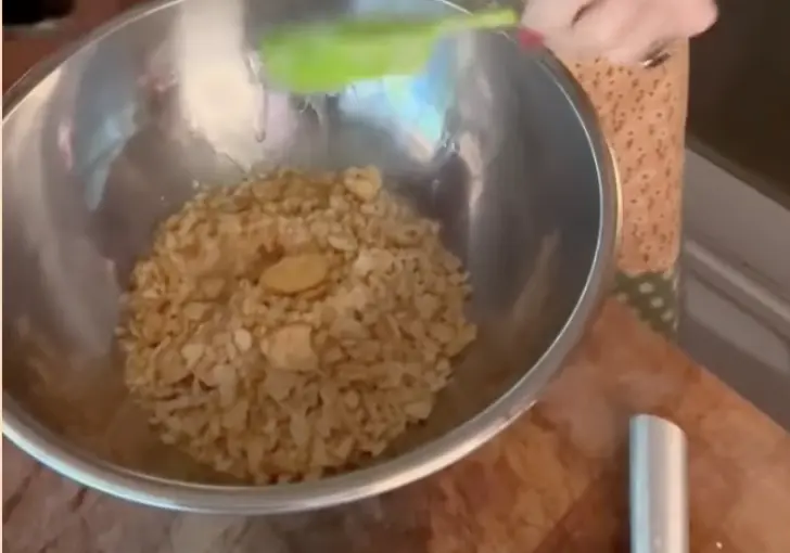 8. Crush one full sleeve of round crackers into fine crumbs using your hands over a bowl. Melt the remaining ½ stick of salted butter and pour it over the crushed crackers. Stir until all crumbs are coated.