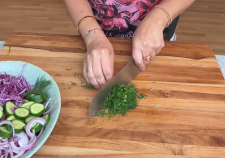 2 tablespoons fresh dill leaves, roughly chopped – Dill adds a soft herbal flavor that makes the slaw feel fresh. I like using fresh dill instead of dried because the taste is cleaner and works better with the cucumber.