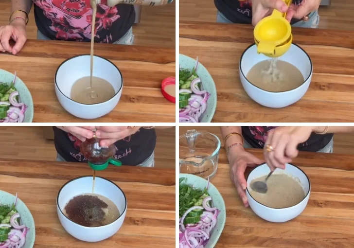 Tahini thickens fast, so I add water a little at a time while whisking. This keeps the dressing smooth and pourable instead of turning into a heavy paste.