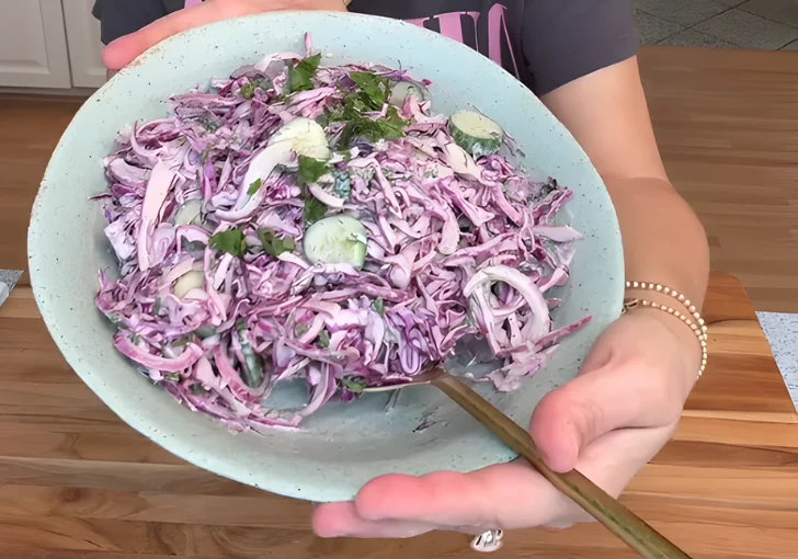 This slaw comes from Middle Eastern style salads where sumac brings a bright lemony flavor. Restaurants like CAVA made it popular because it adds crunch and fresh taste to bowls, wraps, and plates.
