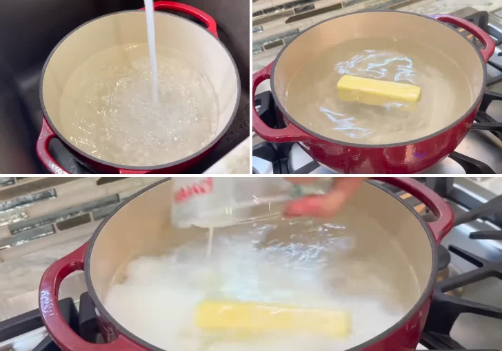 Fill a large pot halfway with water and place it on the stove over high heat. Once the water becomes warm but not yet boiling, add the stick of butter and the cup of whole milk. Allow the butter to fully melt as the mixture continues heating. This butter-and-milk combination creates the rich base that flavors the corn from the inside out.