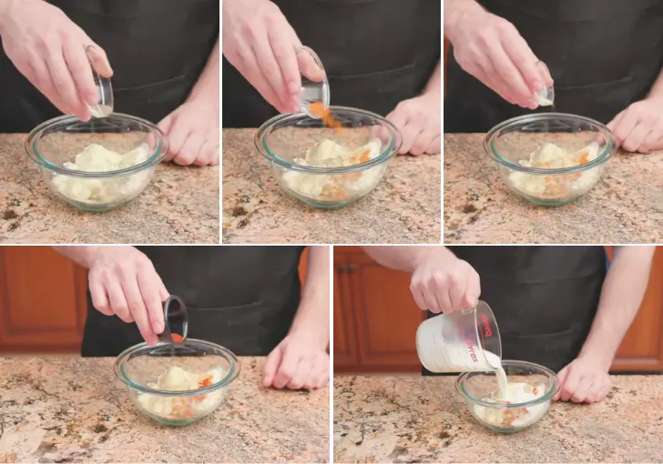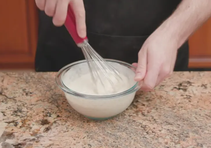 3. Whisk the mixture thoroughly until all spices are fully dissolved and evenly distributed. The texture should be creamy with no visible clumps of seasoning.